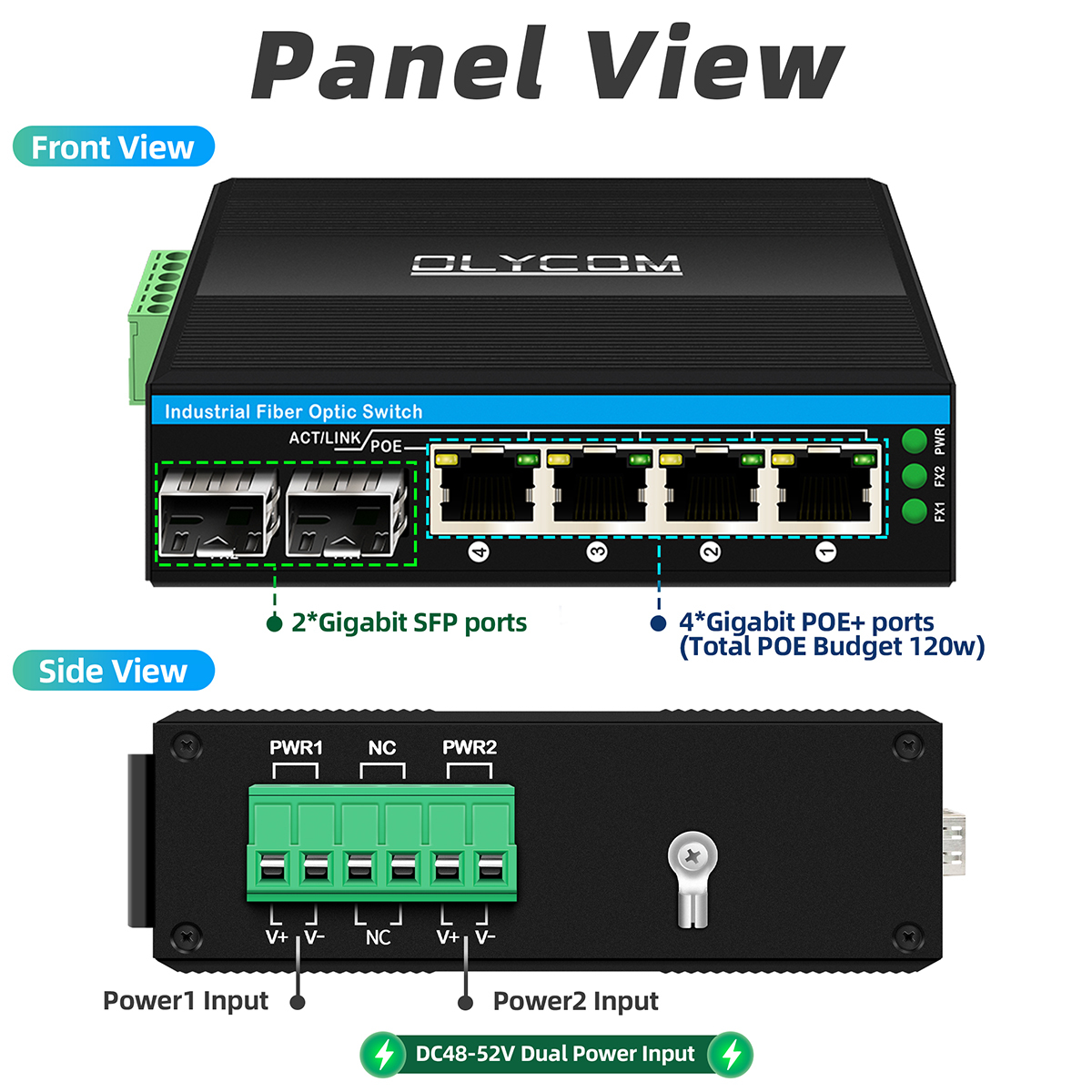 Interruptor Gigabit POE interruptor etéreo no manipulado 120W poe en / en DC48V Entrada de energía
